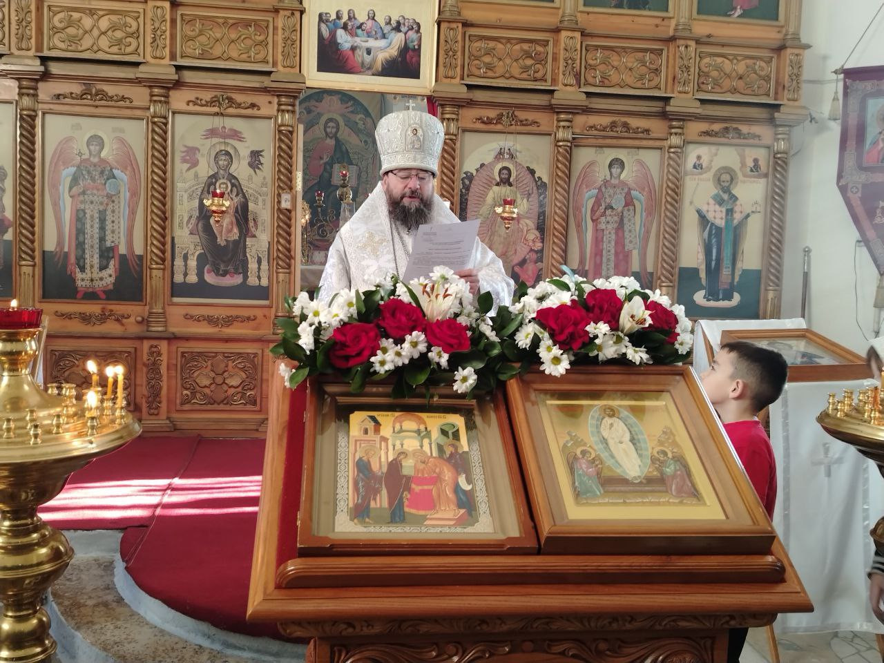 По окончании Литургии архипастырь огласил обращение Святейшего Патриарха Кирилла ко Дню православной молодежи.