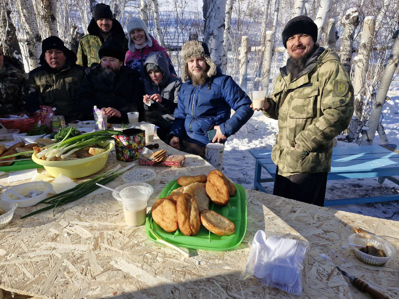 После изучения Евангелия – трапеза, приготовленная шилкинским предпринимателем и Чендемеровым Вениамином Викторовичем из г. Шилка.