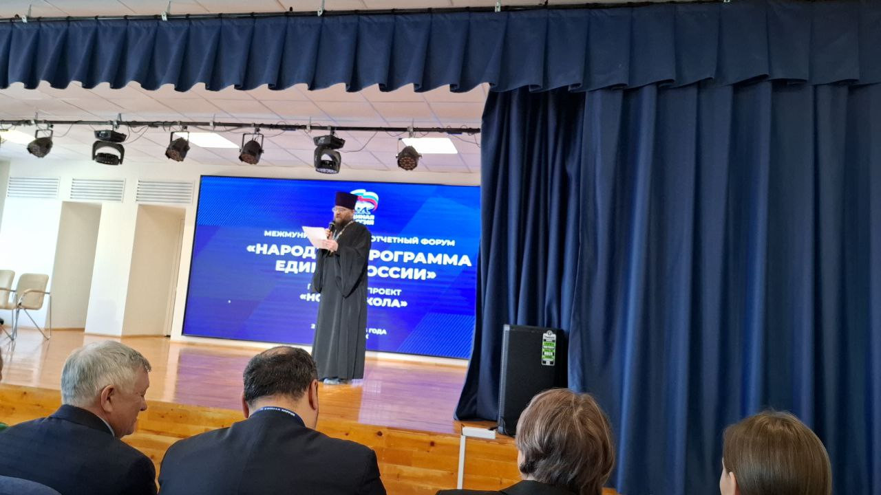 Протоиерей Андрей Кисов зачитал Приветственное слово епископа Макария к участникам форума, в котором архипастырь отметил, что проект «Новая школа» — это шанс не только для обновления инфраструктуры, но и возможность создать новую образовательную среду, где каждый ребенок сможет развиваться и расти. «Давайте вместе работать над тем, чтобы наше образование стало основой для формирования здорового и процветающего общества, в котором духовные и моральные ценности займут достойное место. Важно, чтобы мы все, как общество, осознали свою ответственность за будущее наших детей и вложили в их воспитание все лучшее, что есть в нашей культуре», - призвал владыка Макарий.