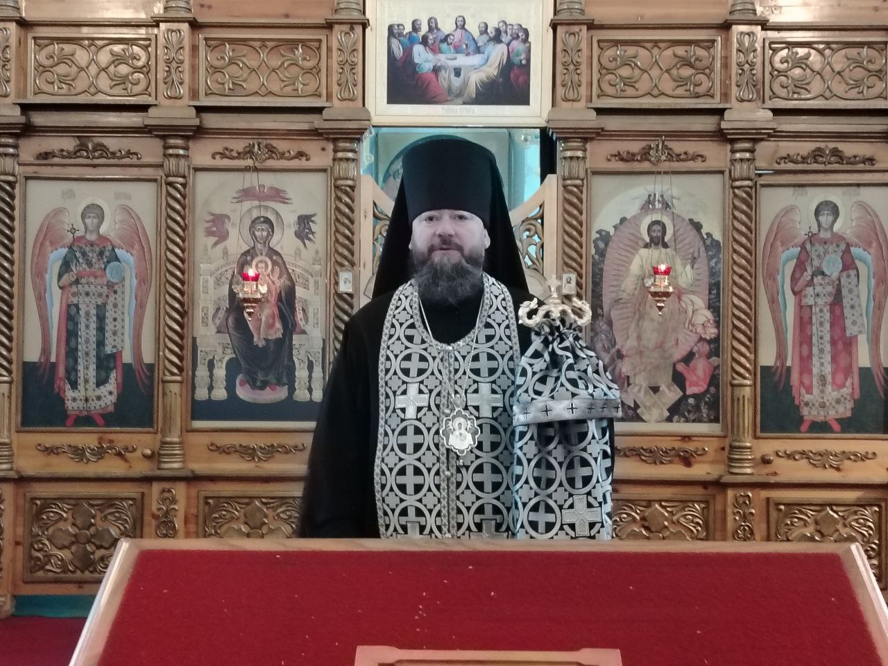 Его Преосвященству сослужили: клирик соборного храма Спаса Нерукотворного Образа г. Краснокаменска иерей Ростислав Зинченко; клирик Воскресенского кафедрального собора в г. Нерчинска иерей Роман Пичуев.