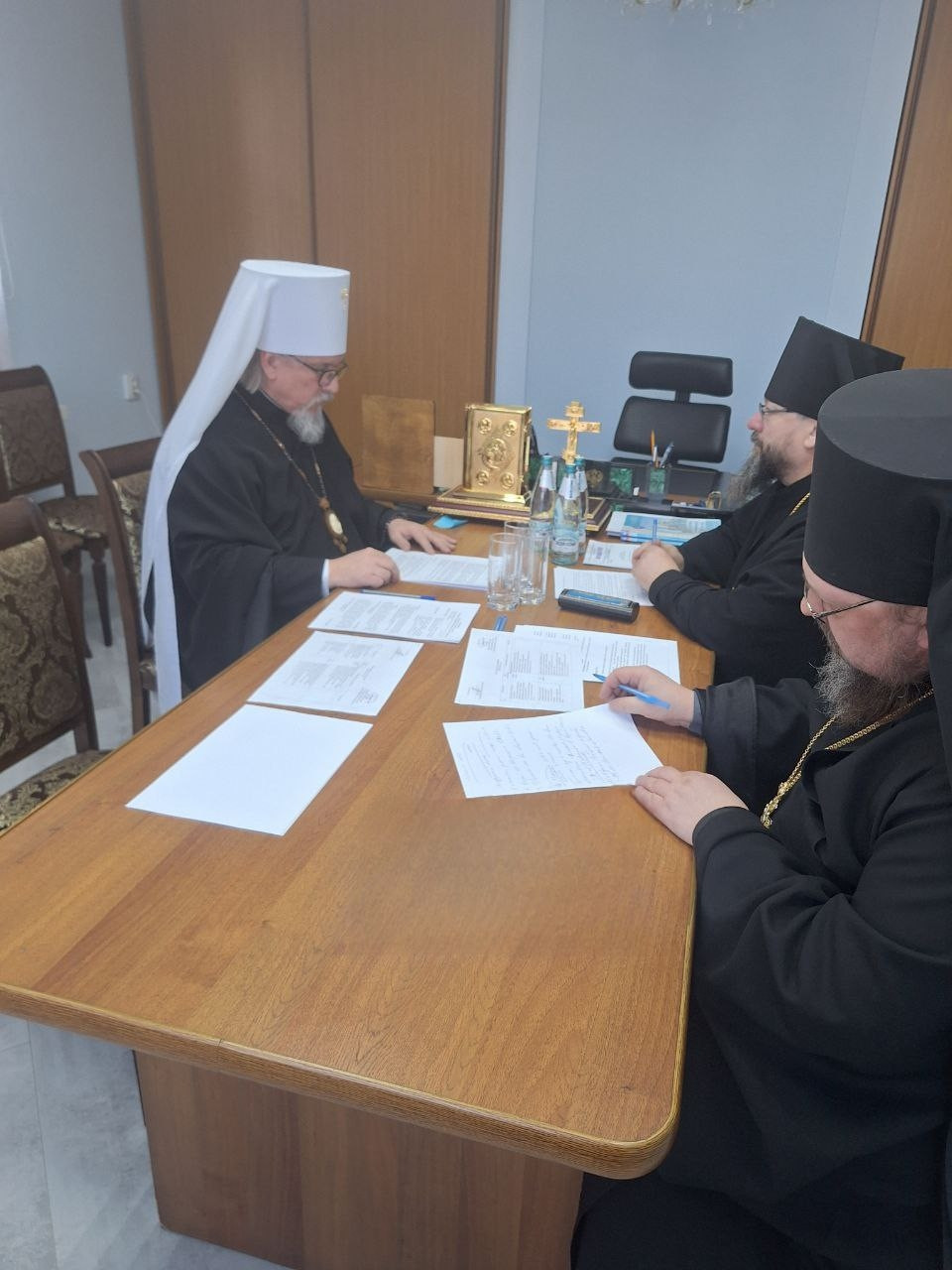 Под председательством митрополита Читинского и Петровск-Забайкальского Димитрия в заседании приняли участие епископ Нерчинский и Краснокаменский Макарий и секретарь Нерчинской епархии игумен Симеон (Зимняков).