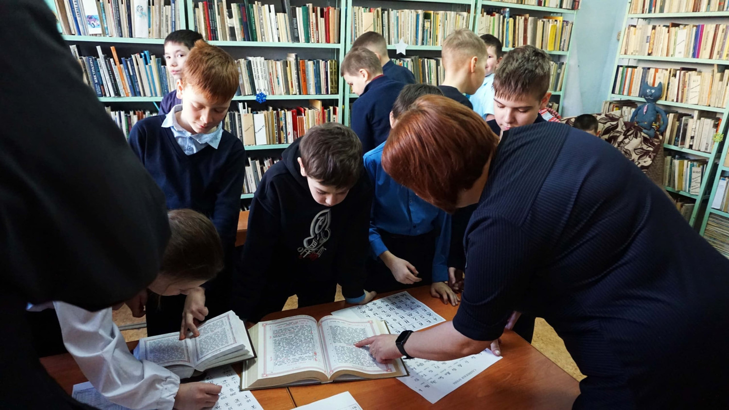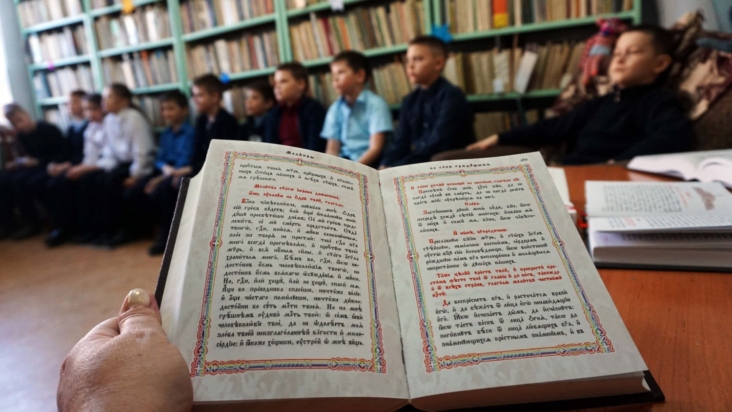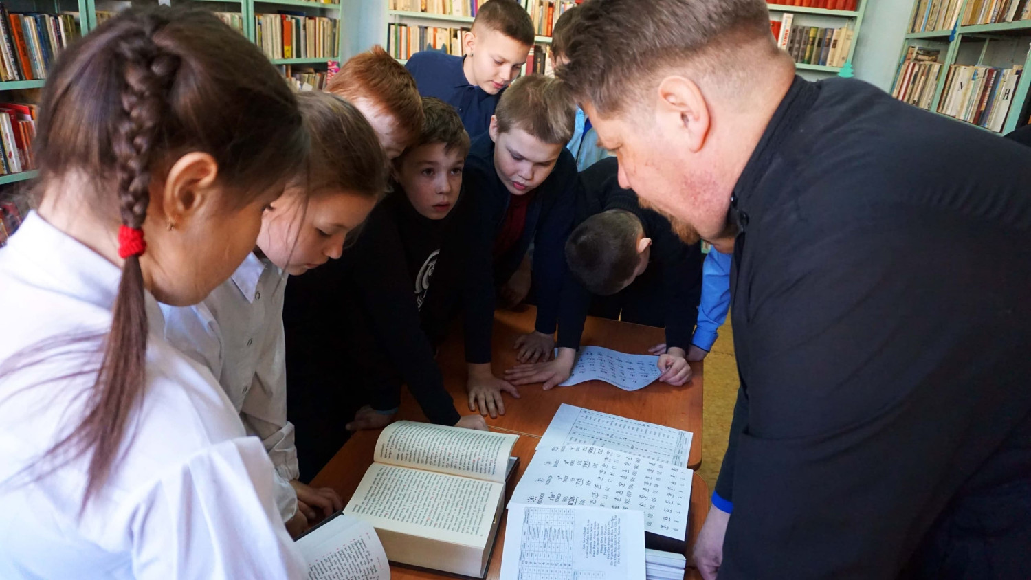 Особое внимание было уделено церковной литературе. По благословению епископа Нерчинского и Краснокаменского Макария, помощник настоятеля прихода апостола Андрея Первозванного в пгт. Дарасун, Владимир Мальцев, познакомил ребят с произведениями на церковнославянском языке.