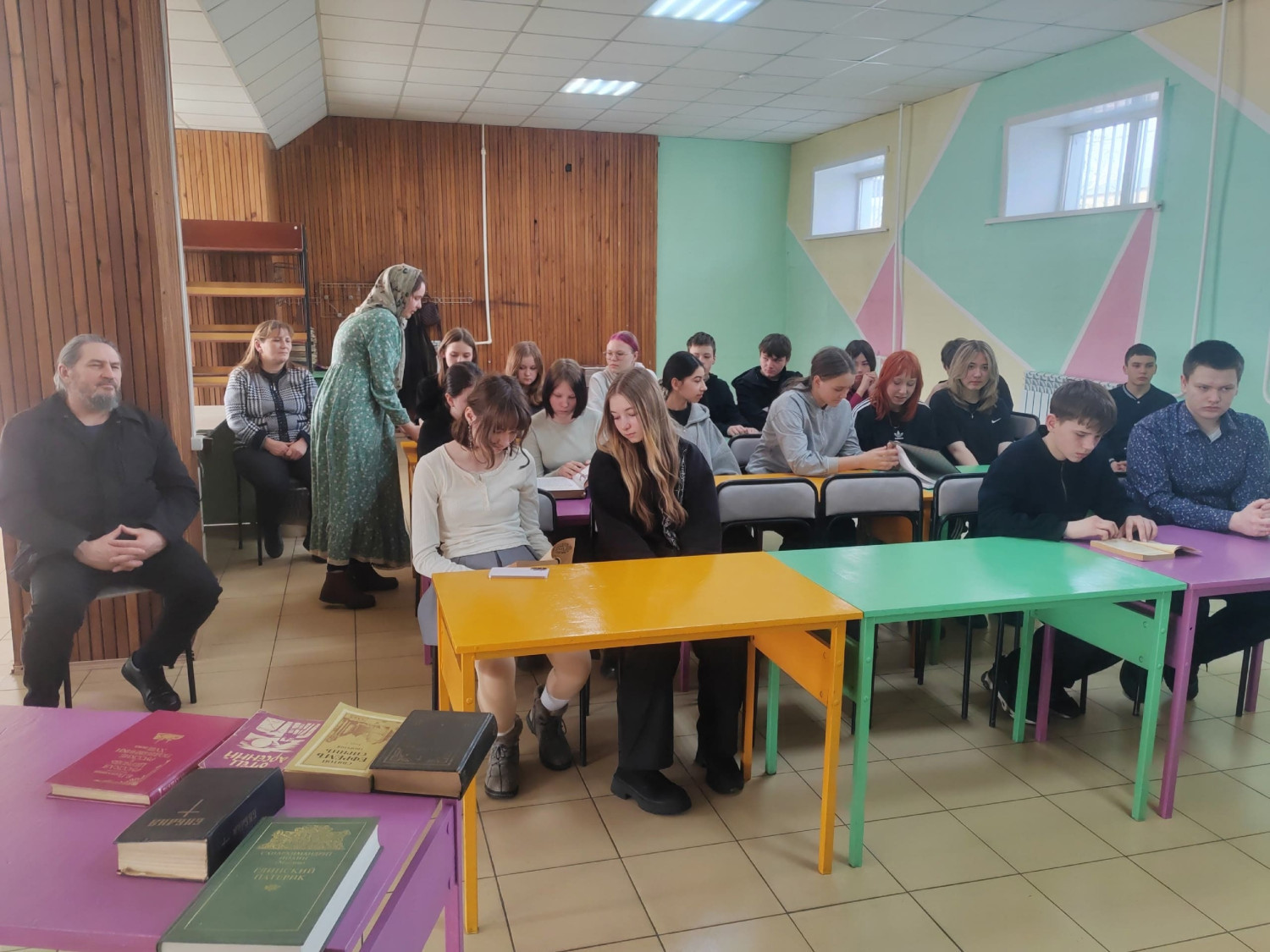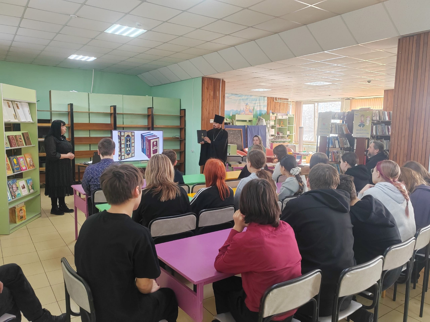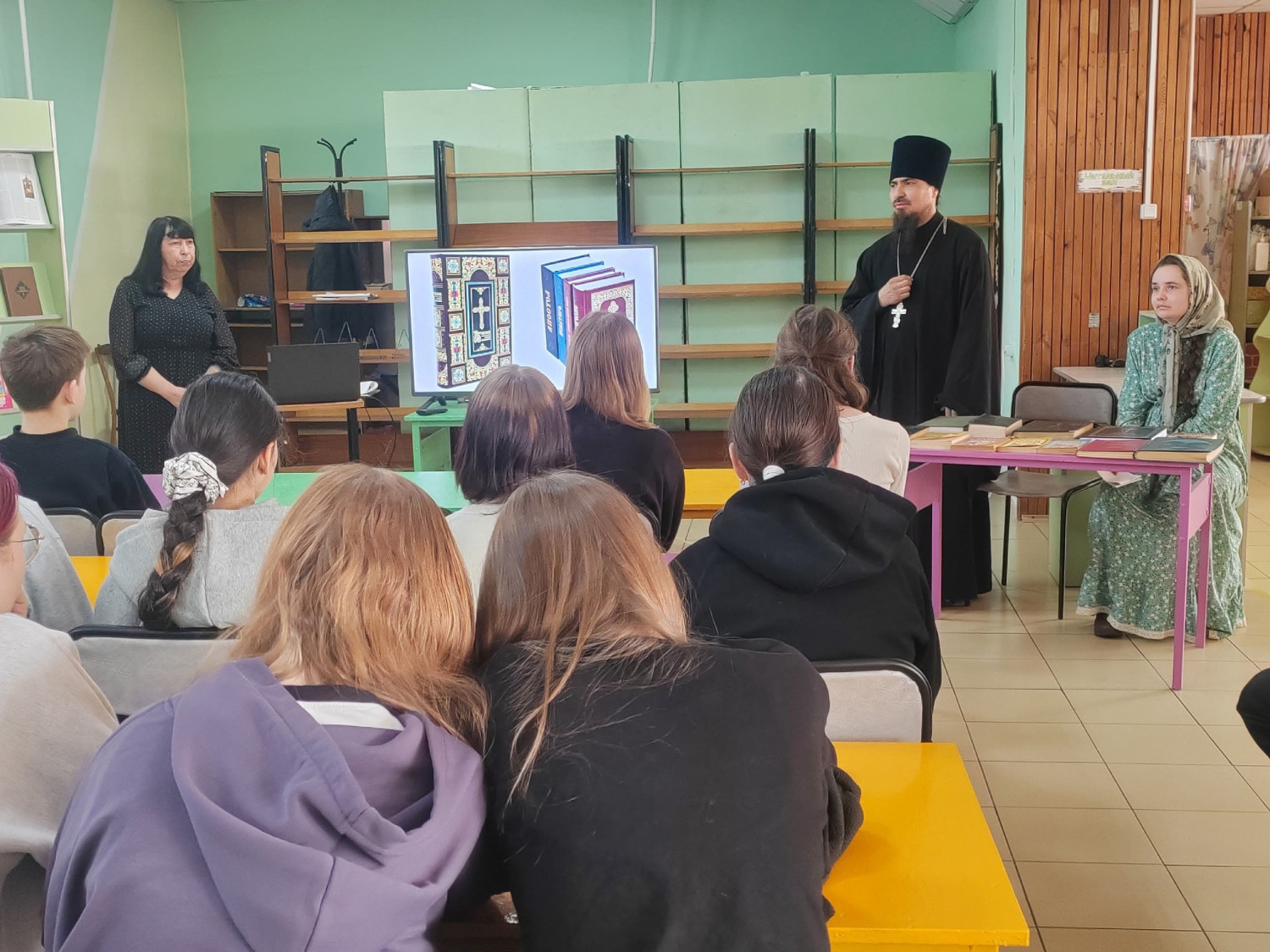 Одним из ярких моментов встречи стало знакомство учащихся с книгами на церковно-славянском языке. Священнослужитель показал ребятам несколько экземпляров, объясняя, как они используются в богослужении и каковы их особенности. Это вызвало живой интерес у школьников, многие из которых впервые увидели такие книги.