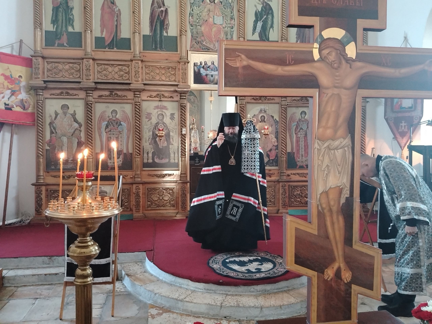 Затем было совершено поклонение Честному и Животворящему Кресту Господню.