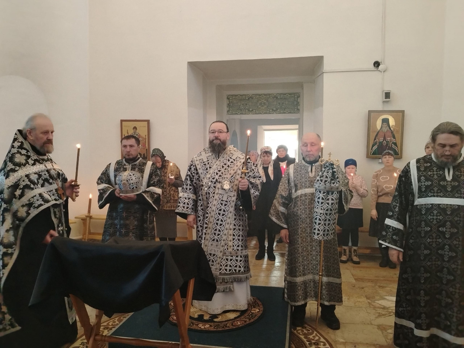 Его Преосвященству сослужили: настоятель храма великомученицы Варвары пгт. Давенда Могочинского района протоиерей Михаил Тарасюк; ключарь Воскресенского кафедрального собора в г. Нерчинска иерей Роман Пичуев.