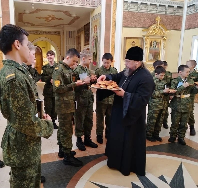 24 марта 2026 года, по благословению епископа Нерчинского и Краснокаменского Макария, кадеты казачьего класса средней общеобразовательной школы №3 посетили соборный храм Спаса Нерукотворно Образа в Краснокаменске.