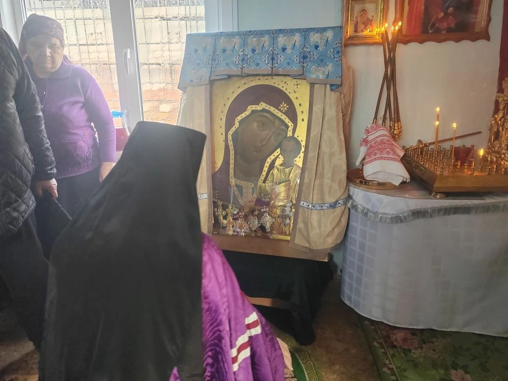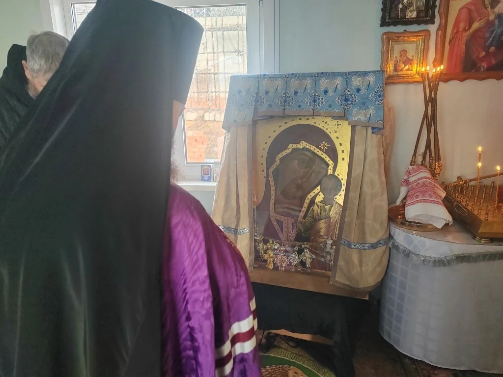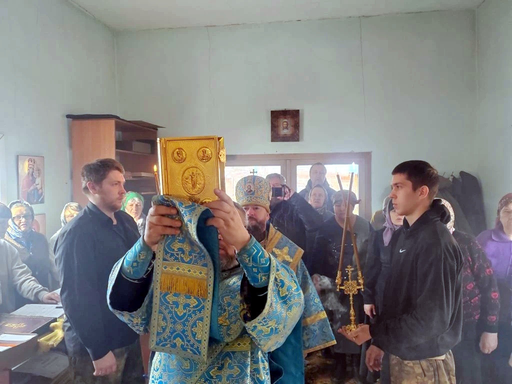 В Субботу Акафиста епископ Макарий совершил Литургию в селе Калинино и крестный ход с Табынской иконой Пресвятой Богородицы вокруг Успенского храма