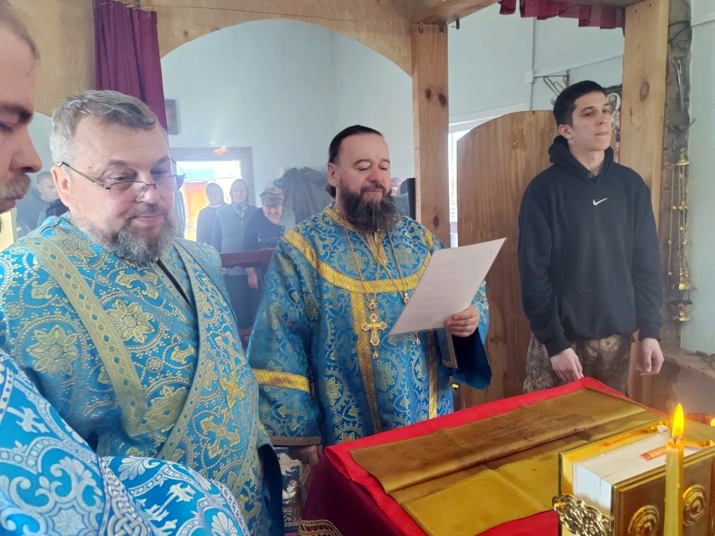 28 марта 2026 года, в праздник Похвалы Пресвятой Богородицы (Суббота Акафиста), епископ Нерчинский и Краснокаменский Макарий совершил Божественную литургию в часовне в честь праведных Богоотец Иоакима и Анны при храме Успения Пресвятой Богородицы в селе Калинино (Монастырское) Нерчинского района.
