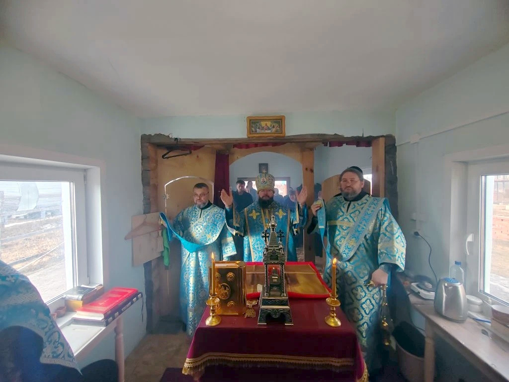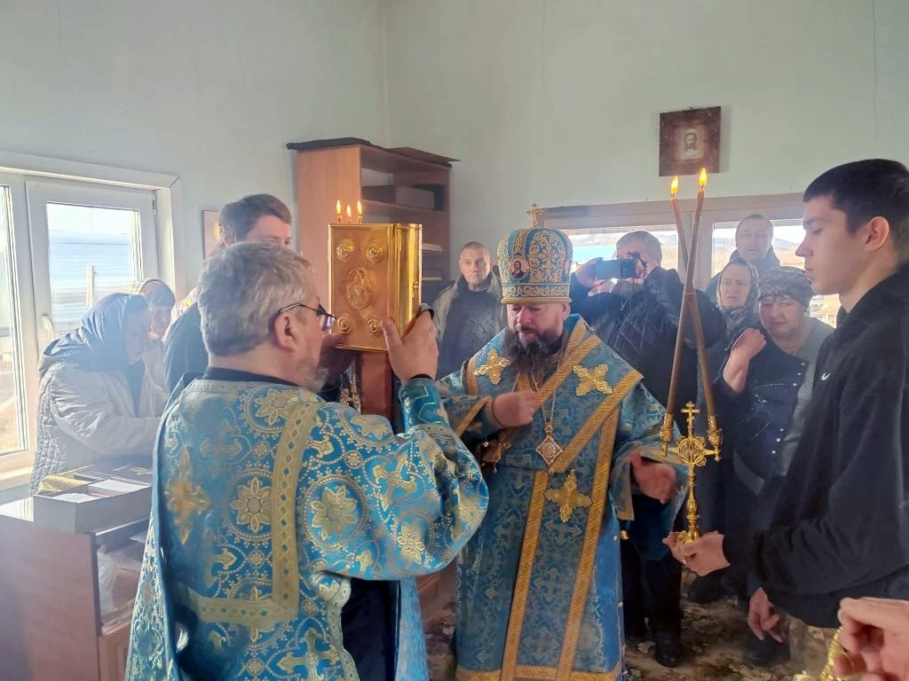Его Преосвященству сослужил настоятель храма святителя Николая Чудотворца пгт. Усть-Карск Сретенского района иерей Николай Корниенко.