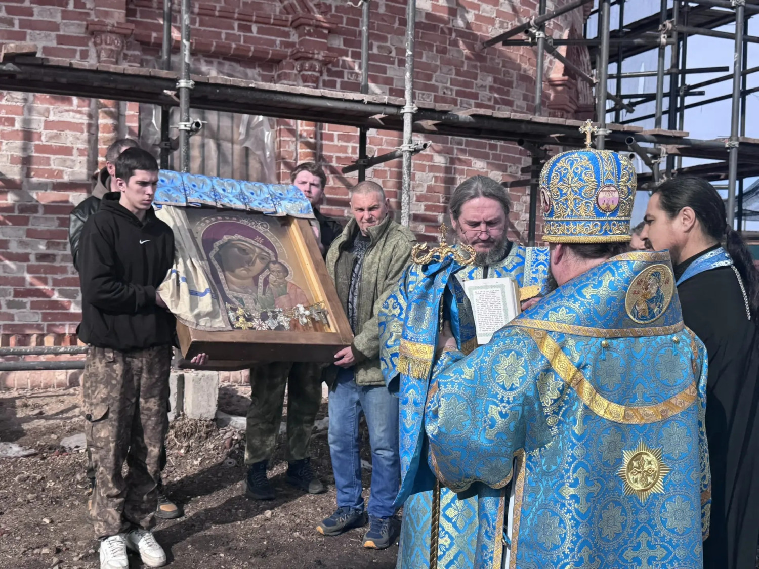По окончании Литургии епископ Макарий совершил молебен Пресвятой Богородице и крестный ход с образом Божией Матери Табынской вокруг Успенского храма.