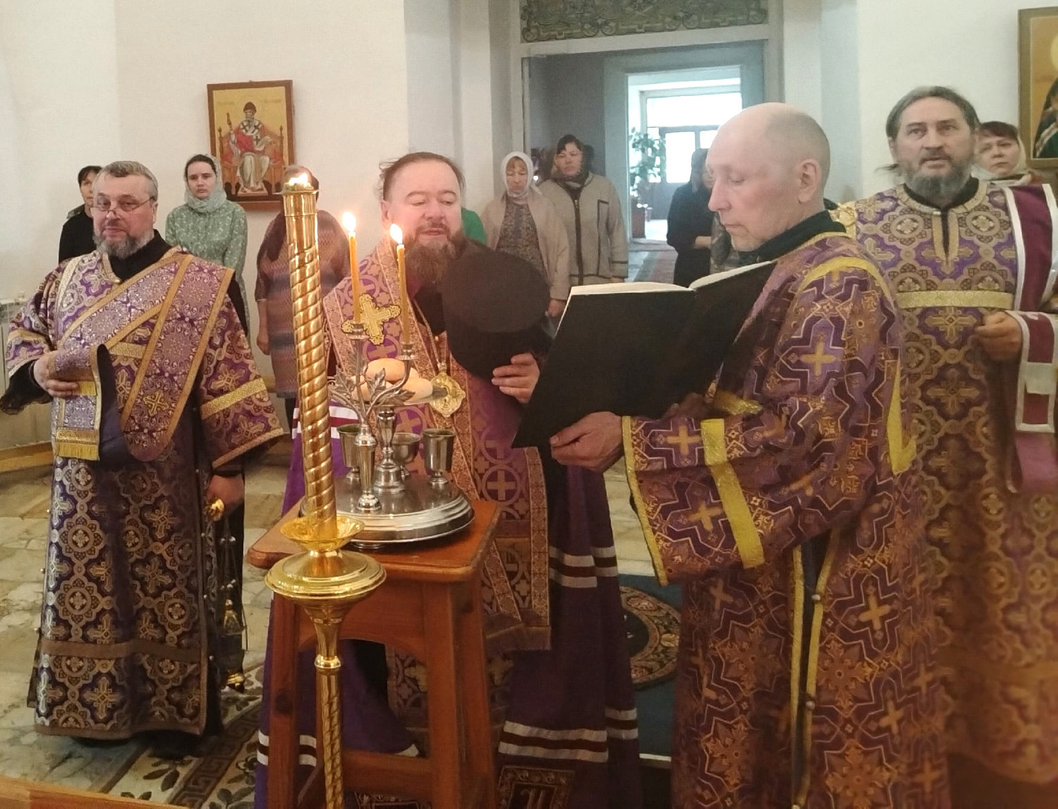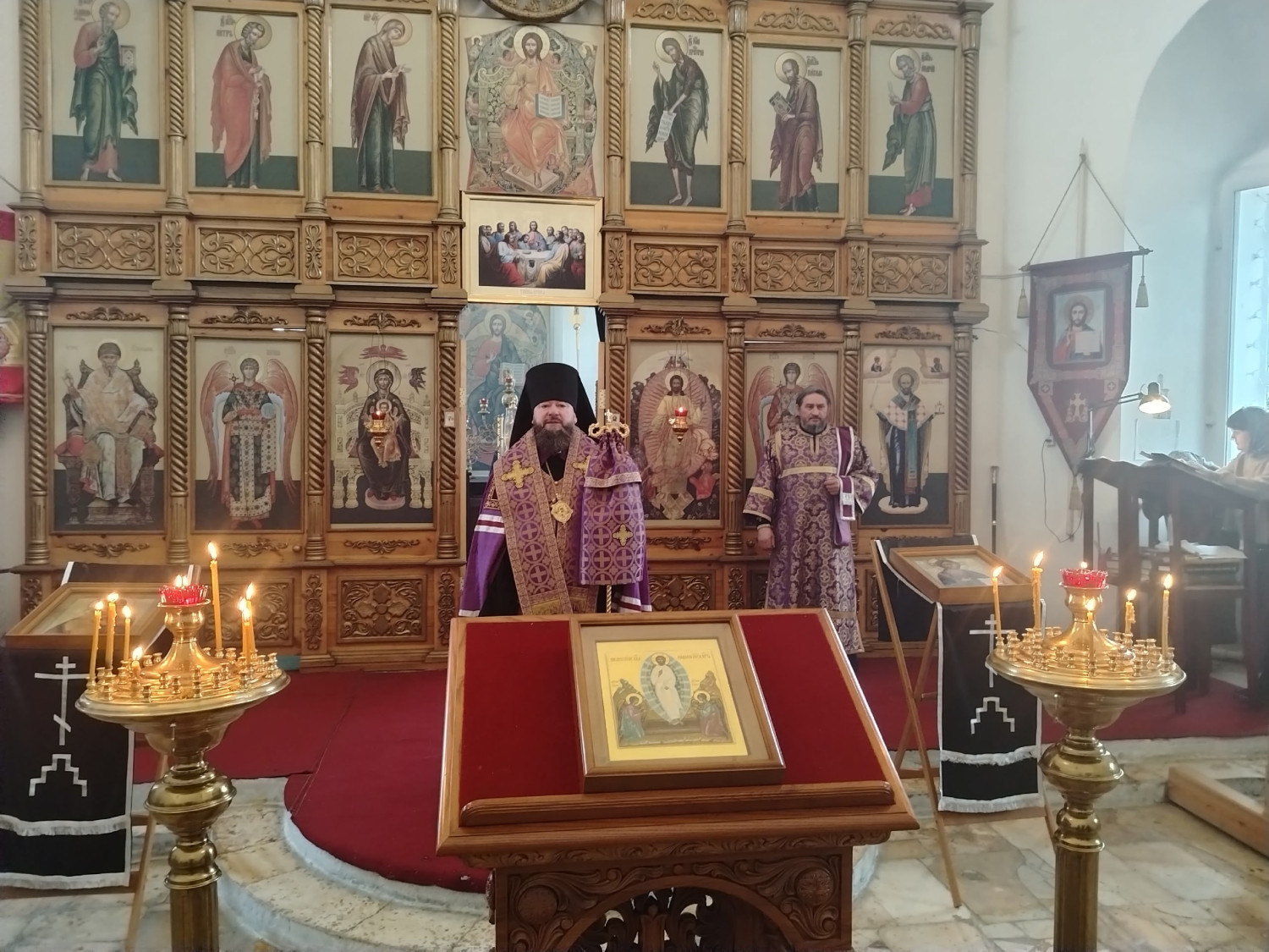 Его Преосвященству сослужили: настоятель храма святителя Николая Чудотворца пгт. Усть-Карск Сретенского района иерей Николай Корниенко; ключарь Воскресенского кафедрального собора в г. Нерчинска иерей Роман Пичуев.