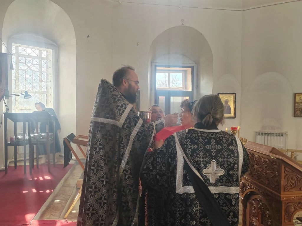Перед Литургией были совершены уставные великопостные богослужения — утреня, часы, изобразительны и вечерня.