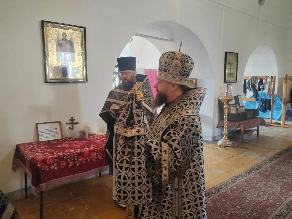 Его Преосвященству сослужил настоятель храма Рождества Пресвятой Богородицы в пгт. Чернышевск протоиерей Андрей Кисов