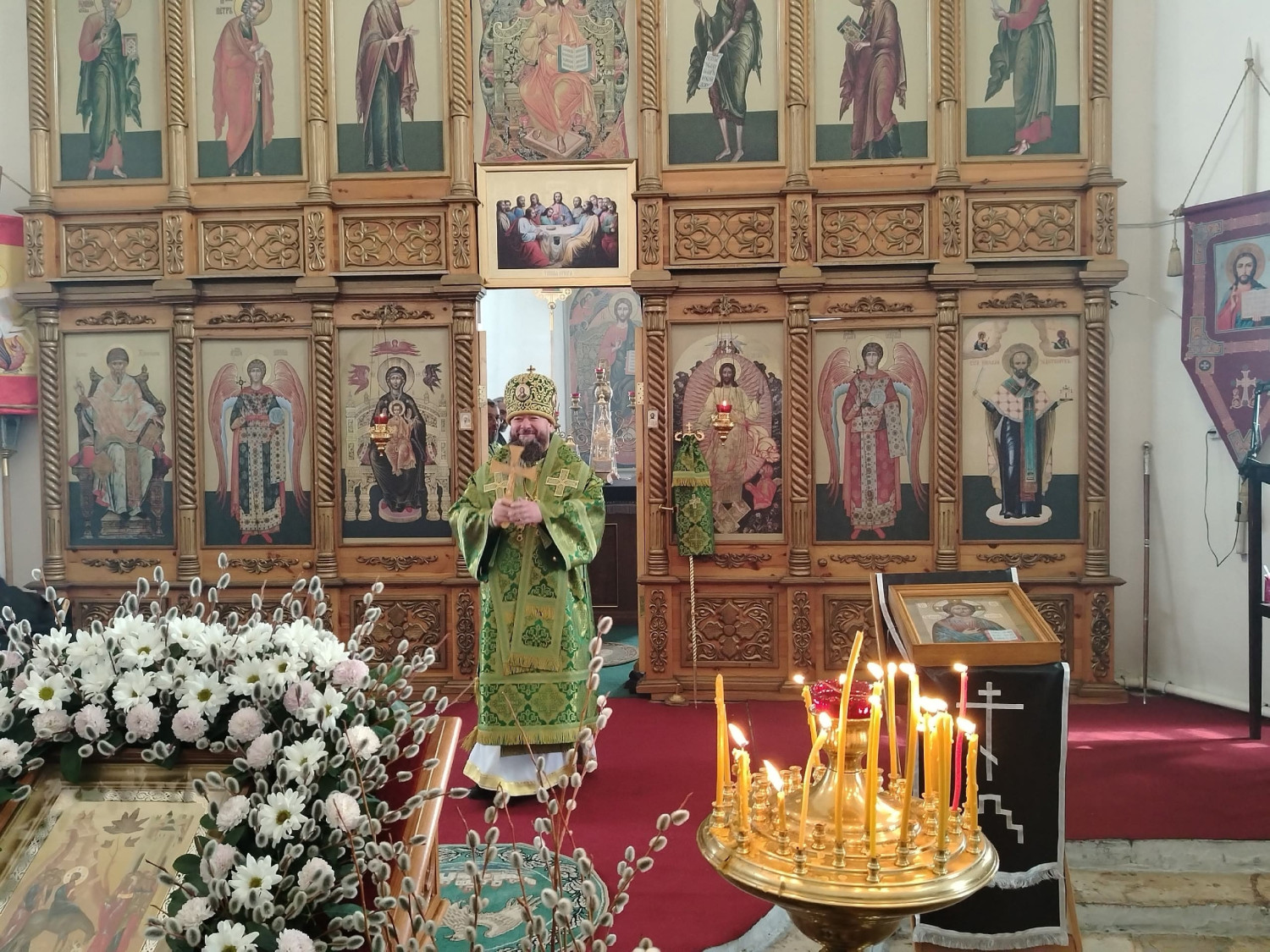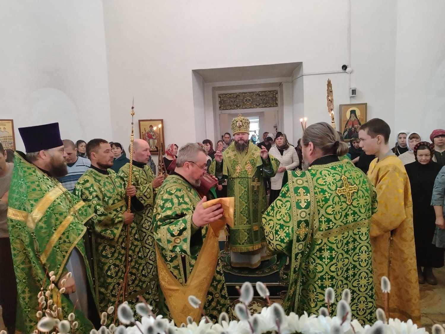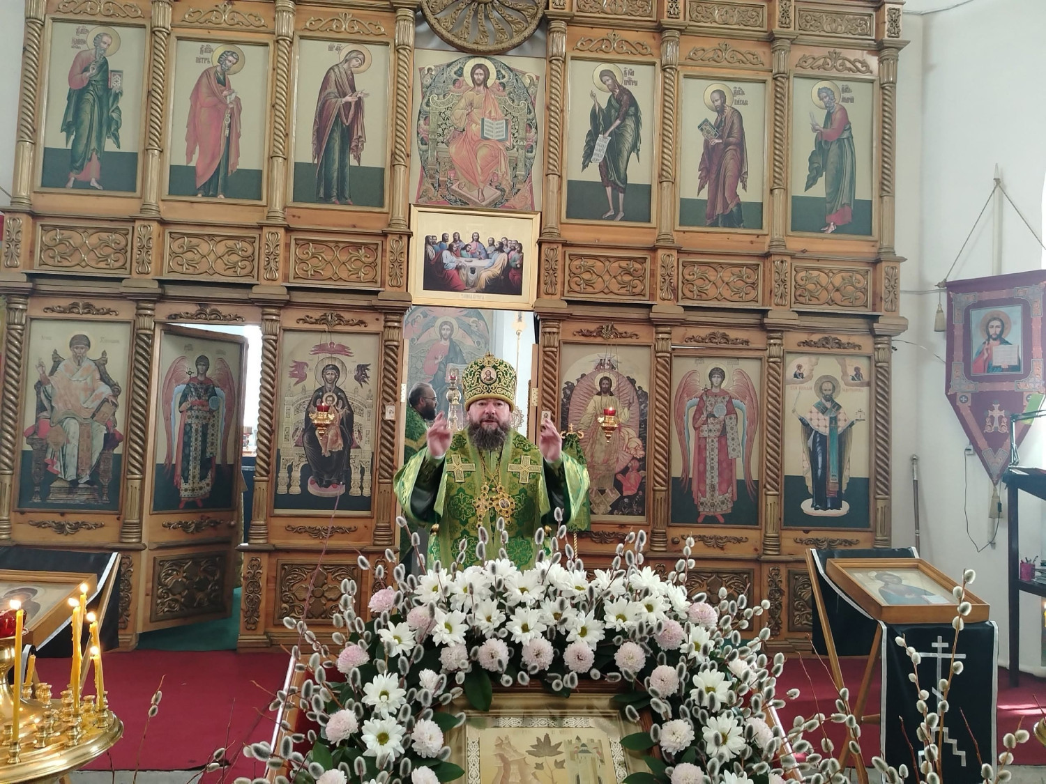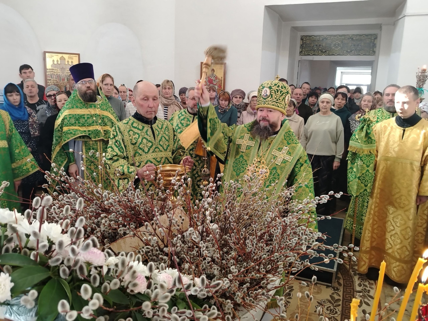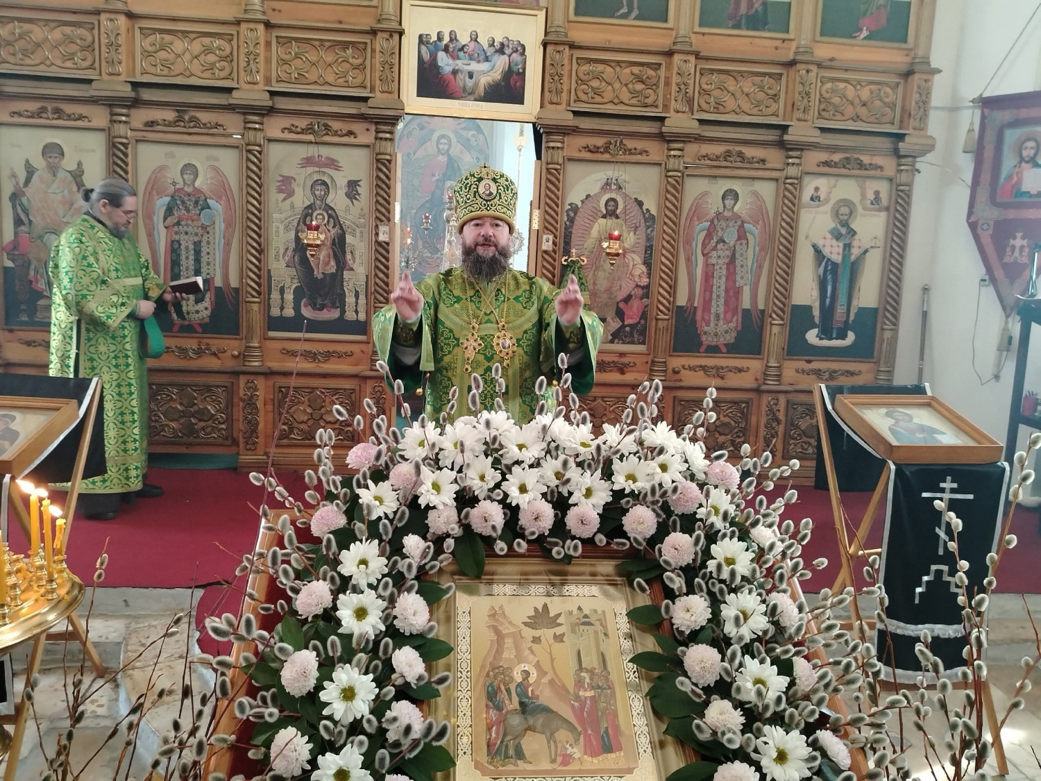 После освящения верб епископ Макарий поздравил прихожан с праздником Входа Господня в Иерусалим и обратился к верующим с архипастырским словом: