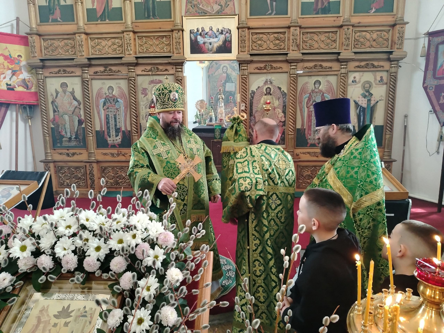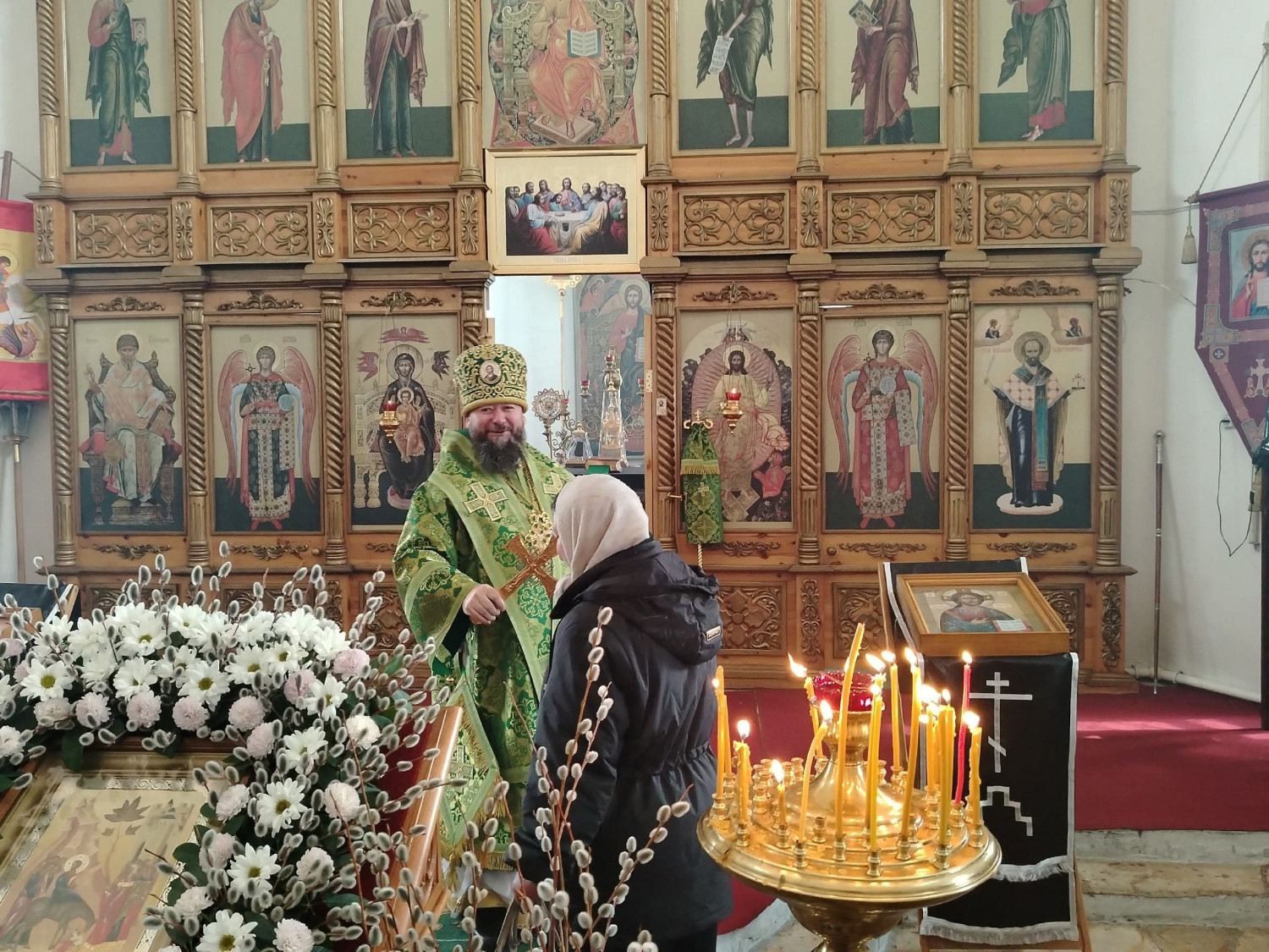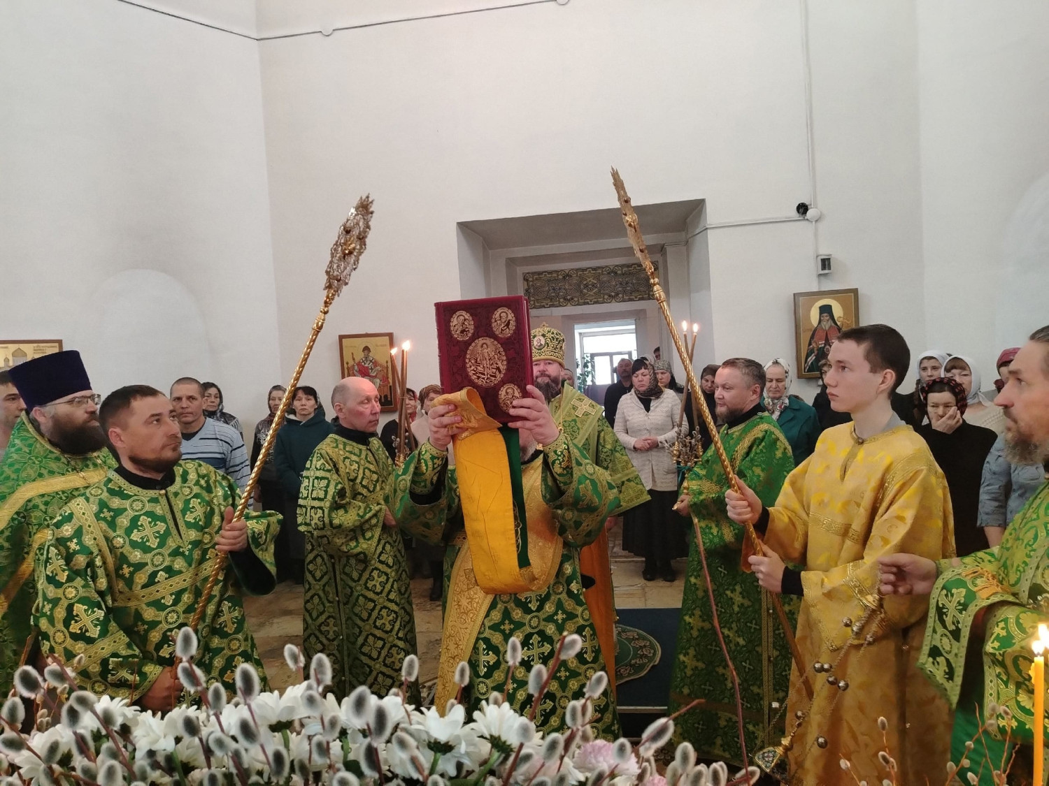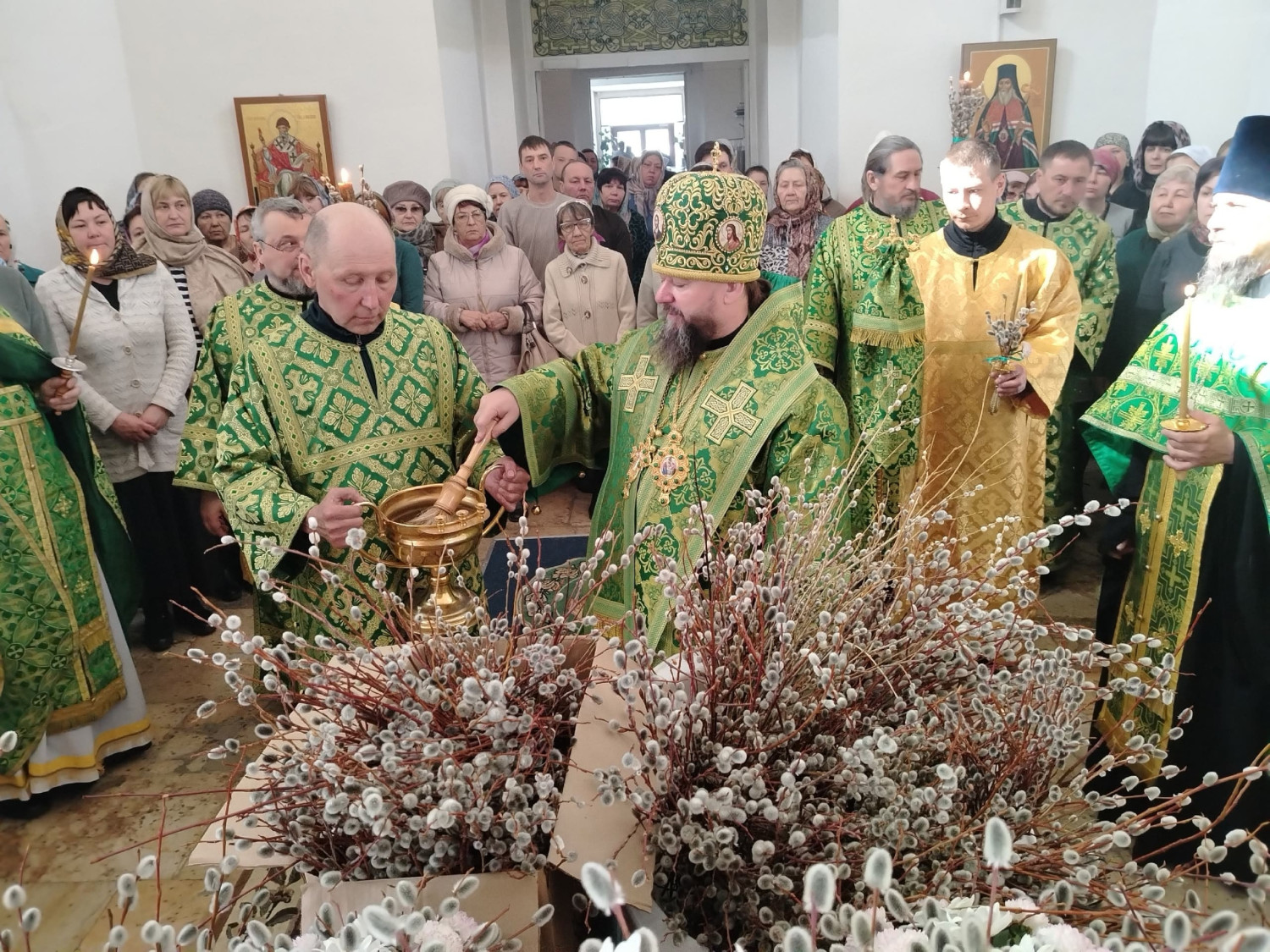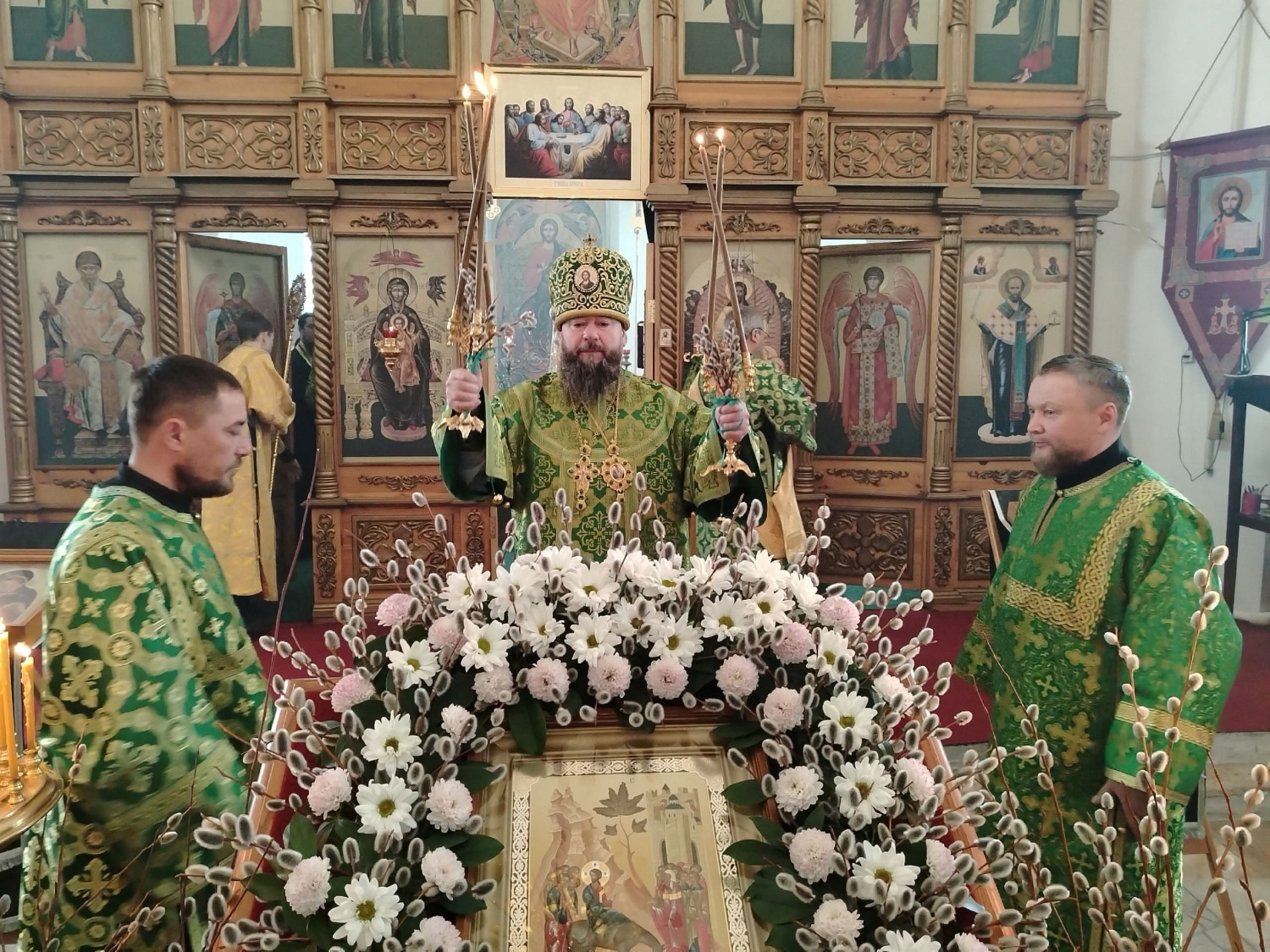 После освящения верб епископ Макарий поздравил прихожан с праздником Входа Господня в Иерусалим и обратился к верующим с архипастырским словом: