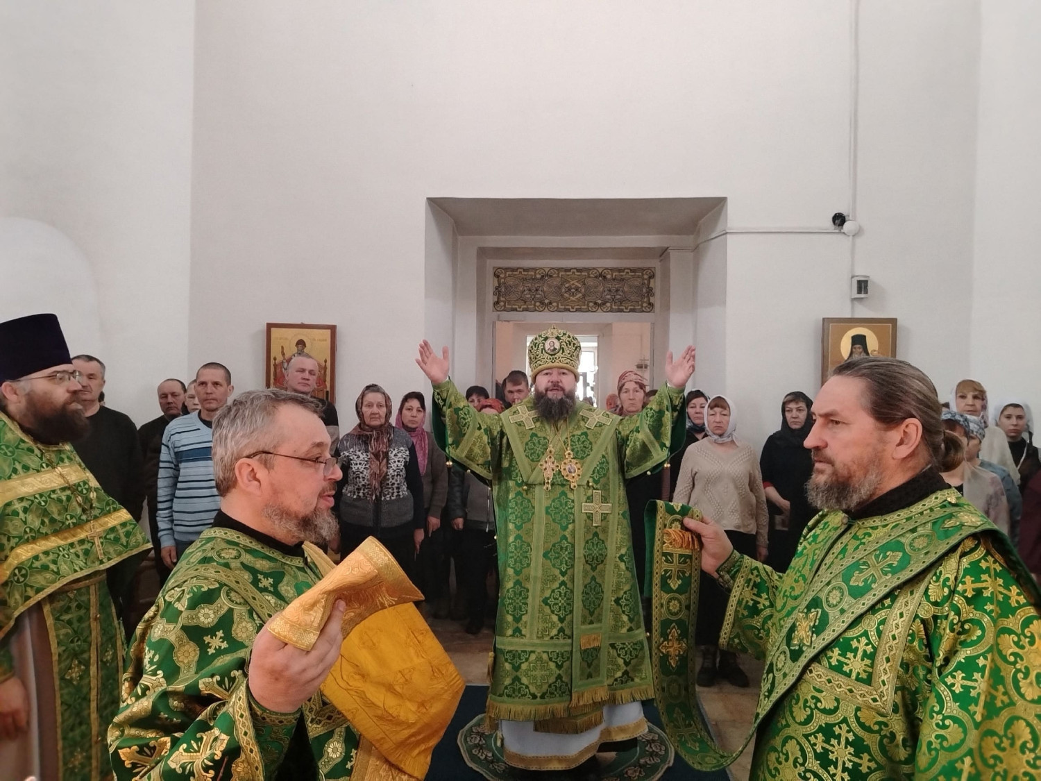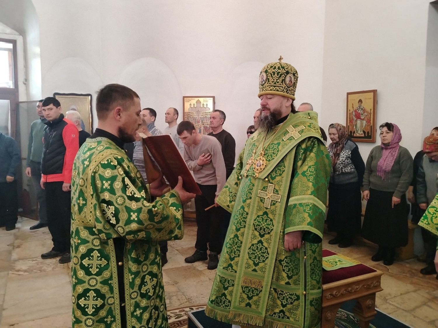 Его Преосвященству сослужил настоятель храма Рождества Пресвятой Богородицы в пгт. Чернышевск протоиерей Андрей Кисов;