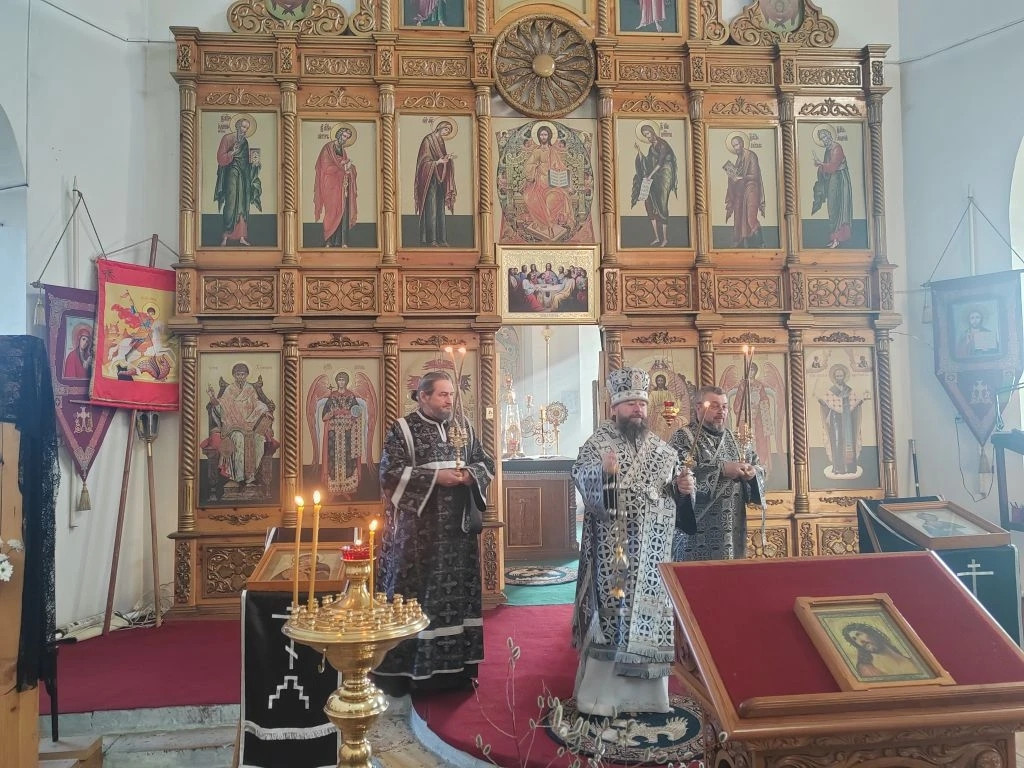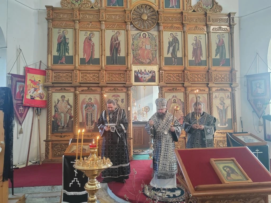 Его Преосвященству сослужили: настоятель храма преподобного Амвросия Оптинского пгт. Первомайский Шилкинского района иерей Лев Клюев; ключарь Воскресенского кафедрального собора г. Нерчинска иерей Роман Пичуев.