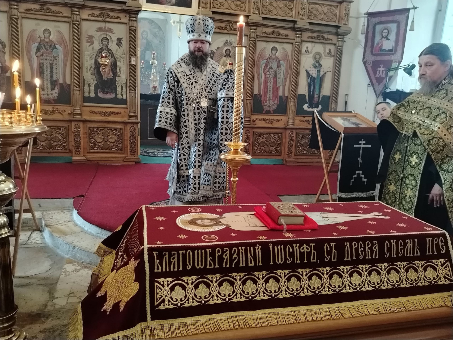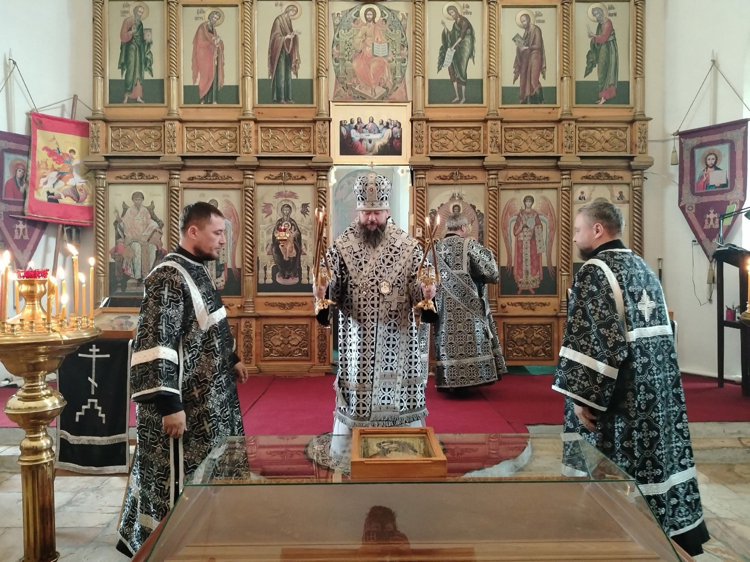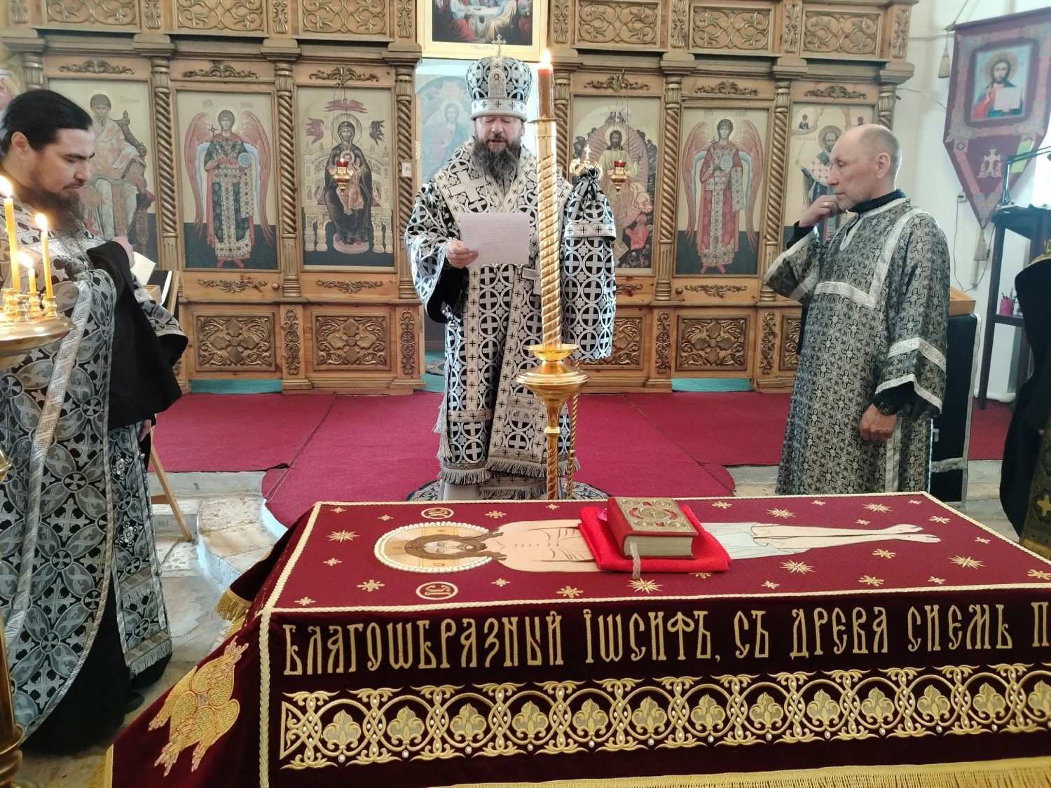 Его Преосвященству сослужили: настоятель храма преподобного Амвросия Оптинского пгт. Первомайский Шилкинского района иерей Лев Клюев; ключарь Воскресенского кафедрального собора г. Нерчинска иерей Роман Пичуев.