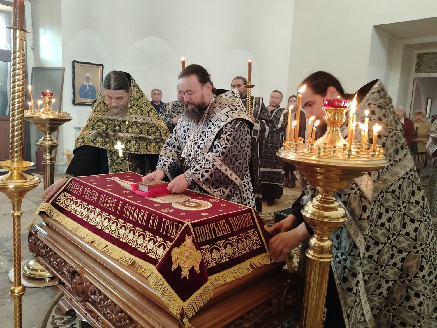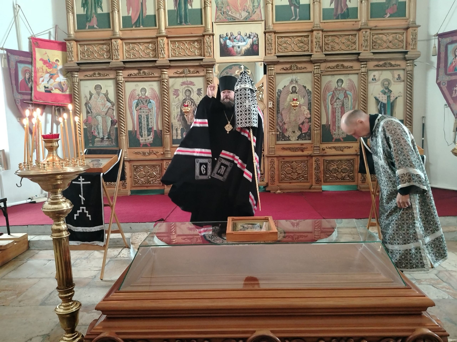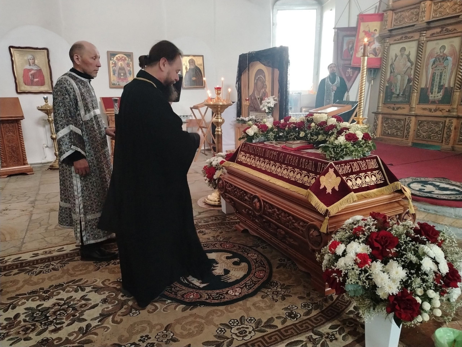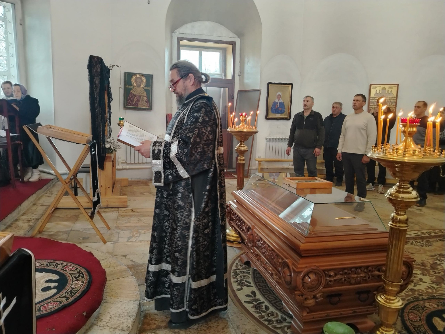 Его Преосвященству сослужили: настоятель храма преподобного Амвросия Оптинского пгт. Первомайский Шилкинского района иерей Лев Клюев; ключарь Воскресенского кафедрального собора г. Нерчинска иерей Роман Пичуев.