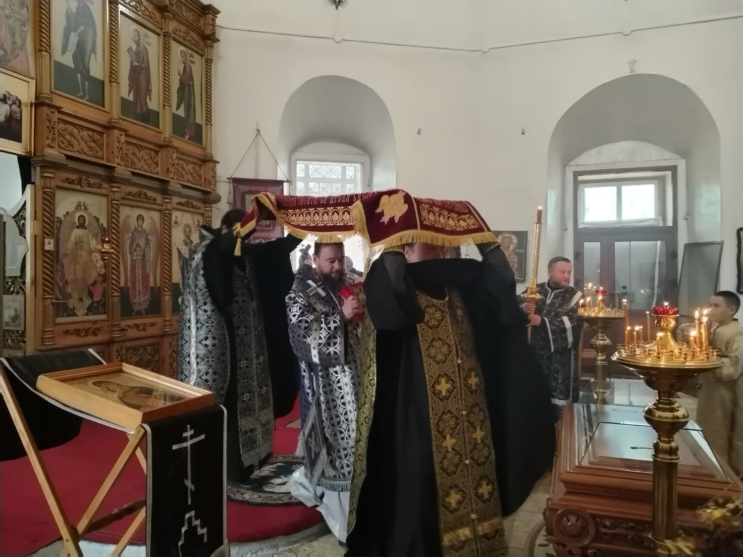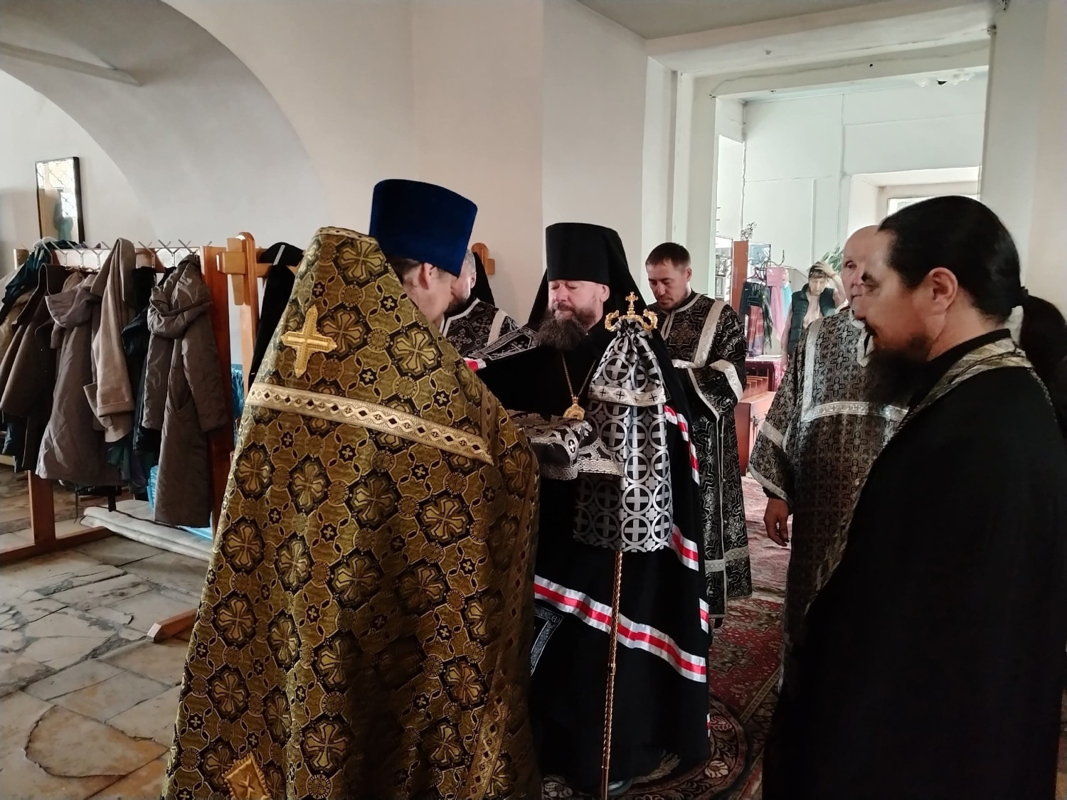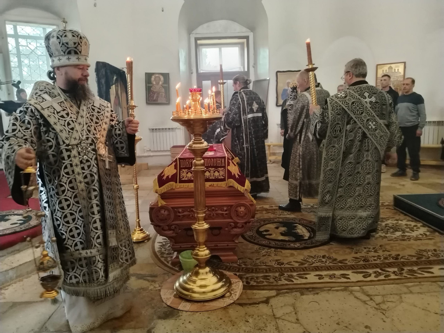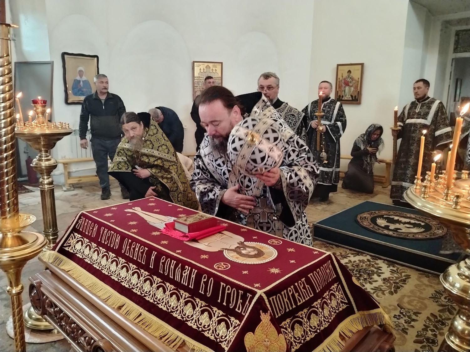 10 апреля 2026 года, в Великий Пяток — день, посвященный воспоминанию Святых спасительных Страстей Господа нашего Иисуса Христа, епископ Нерчинский и Краснокаменский Макарий совершил вечерню с выносом Плащаницы Спасителя в кафедральном соборе Воскресения Христова в Нерчинске.