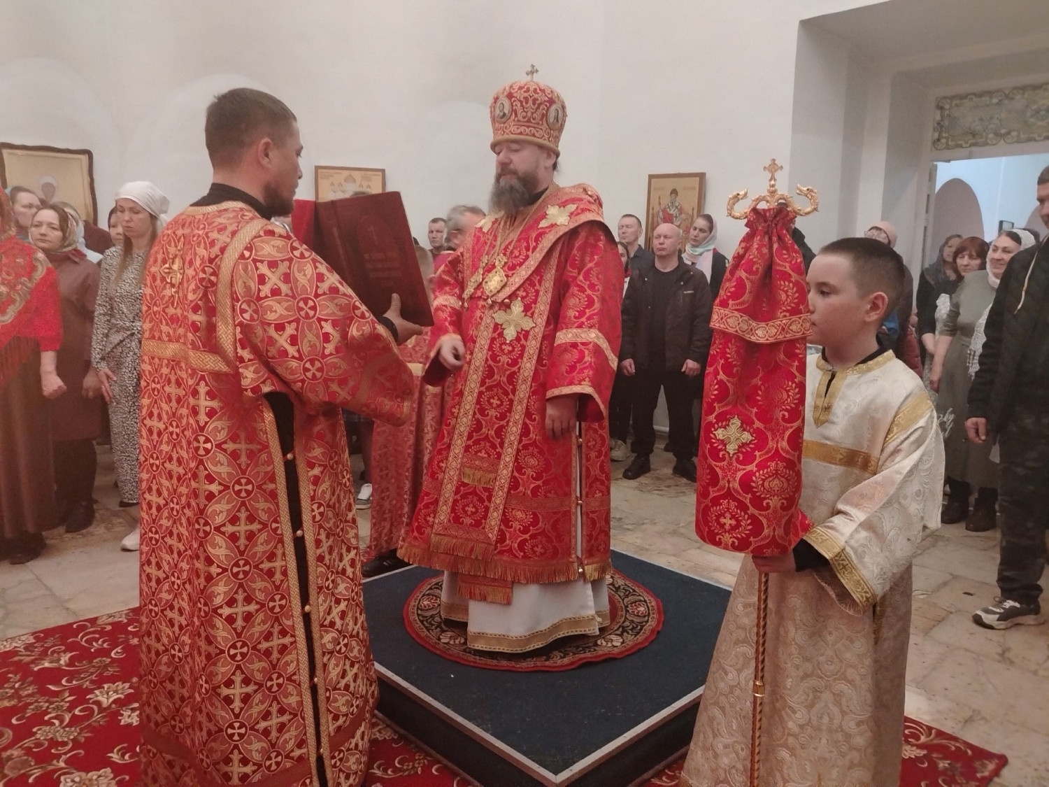 Затем владыка Макарий огласил Пасхальное послание Святейшего Патриарха Кирилла архипастырям, пастырям, диаконам, монашествующим и всем верным чадам Русской Православной Церкви.