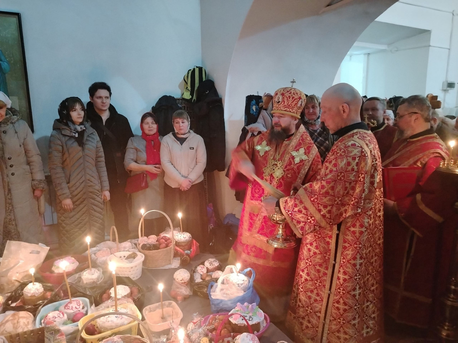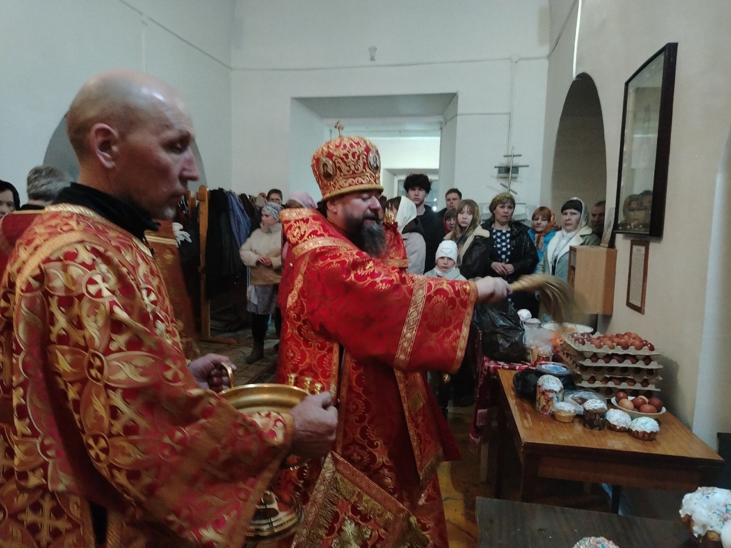 В завершении праздничного богослужения архипастырь освятил пасхальную снедь — куличи, крашеные яйца и другую скоромную пищу.