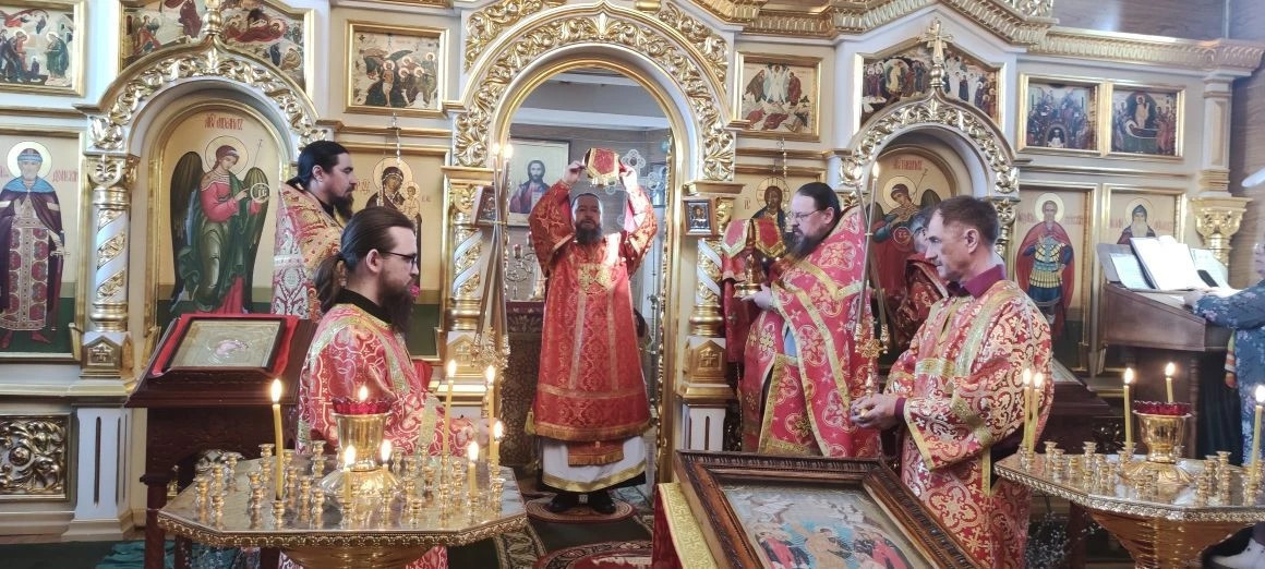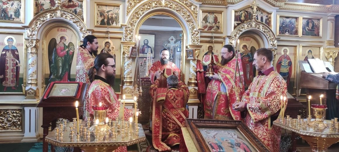Его Преосвященству сослужили: настоятель храма игумен Симеон (Зимняков); ключарь Воскресенского кафедрального собора в г. Нерчинска иерей Роман Пичуев.