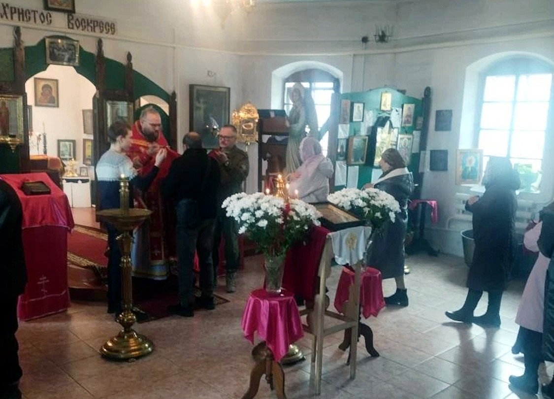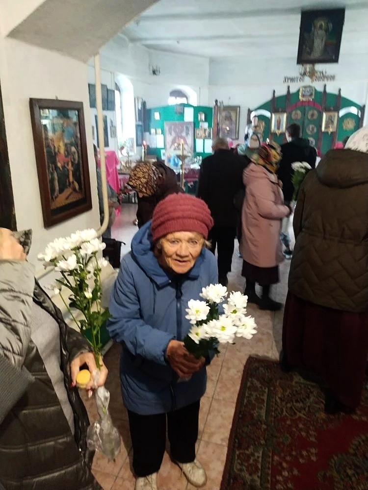По благословению епископа Нерчинского и Краснокаменского Макария, протоиерей Андрей преподнес цветы женщинам, присутствующим на богослужении.