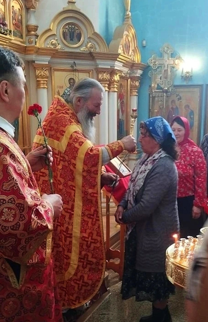 В знак признательности, по благословению епископа Нерчинского и Краснокаменского Макария, настоятель преподнес женщинам цветы.